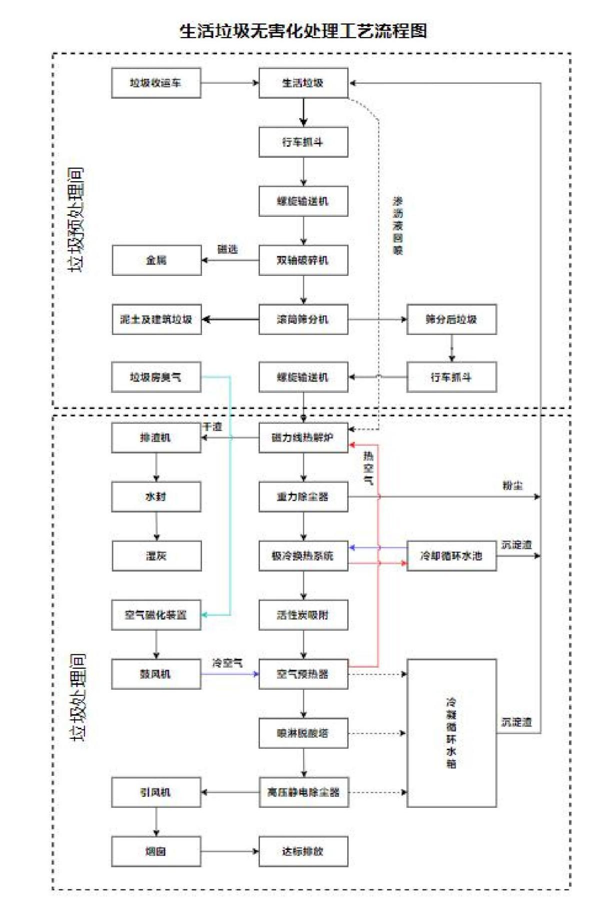 磁力線熱解爐采用“磁化二段三區(qū)四室”一體式集成設(shè)備,磁化為對助燃空氣進行磁化;二段為缺氧熱解氣化段、過氧燃燒段;三區(qū)為燃盡區(qū)、燃燒區(qū)、烘干區(qū);四室為燃燒室、二燃室1、二燃室2、二燃室3。